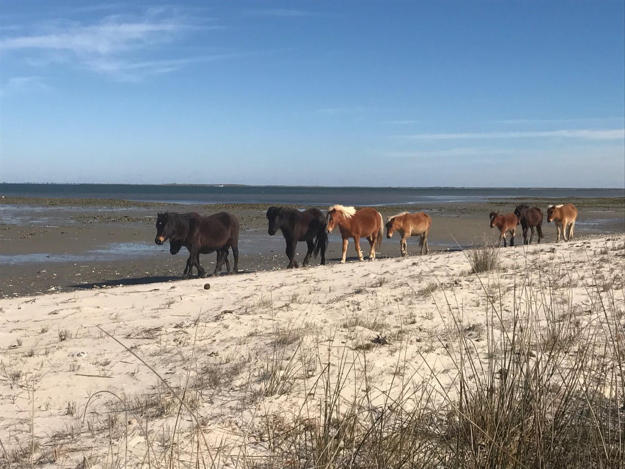 Join us for a guided tour of Shackleford Banks, where you will venture to look for the wild Shackleford Banks horses. Our guides will lead you through the dunes and across the beach to find these magical animals. While viewing the horses, we must remain at least 50 feet away. Along the way, your guide will tell you about the history and ecosystem of Shackleford Banks. We offer tours from Beaufort, NC and Harkers Island, NC. Vehicles are not allowed on Shackleford Banks, so this is a walking tour. Book your tour today to learn more about the Shackleford Banks horses!
